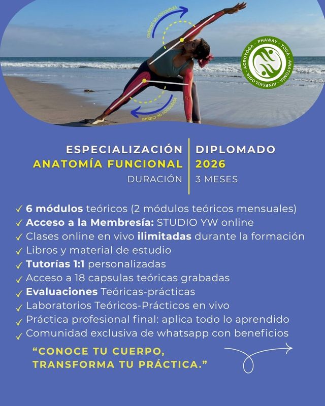Una formación profesional diseñada para docentes de yoga que desean comprender el cuerpo en movimiento y aplicar principios de anatomía funcional para guiar prácticas más seguras, conscientes y adaptadas a cada alumno.